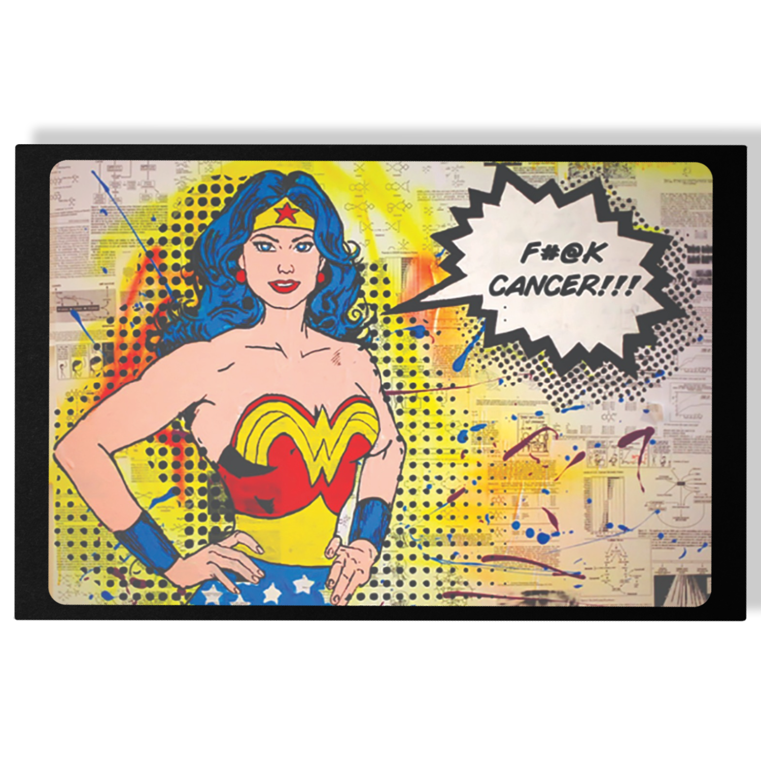 Meeting JulieAnn and hearing her story, the first word that came to mind was "strength". Rather than allow herself to be weakened by her cancer, JulieAnn is empowered. JulieAnn has had more experiences with cancer than any person should have to face in a lifetime. In getting to know her, it is very apparent that overcoming these battles with cancer is what has shaped her into the strong woman she is today. The challenge was trying to take the vast scope of her experiences and do it justice in a single painting. But JulieAnn really is a superhero. And as soon as the image of Wonder Woman came to mind, there was no turning back…