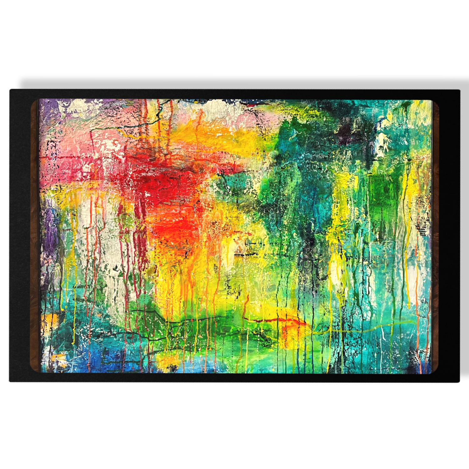 I spent a lot of time analyzing this photo throughout my journey with Heather. The more I looked at it, beyond the trauma, I saw a woman reborn. Henna covers her forehead and scalp. Relief plays at the curl of her lips. She had lost parts of her, but Heather makes beauty out of challenges. When I think of her, colors flood my mind from all directions. They blur, blend, and overlap, creating their own unique sections of the painting. The composition is bold, passionate, and fluid – like Heather. And just like life—sometimes the painting can get a little messy. Heather didn’t shy away from showing me her scars. It is only right her painting should be daring enough to show the same deep vulnerability.