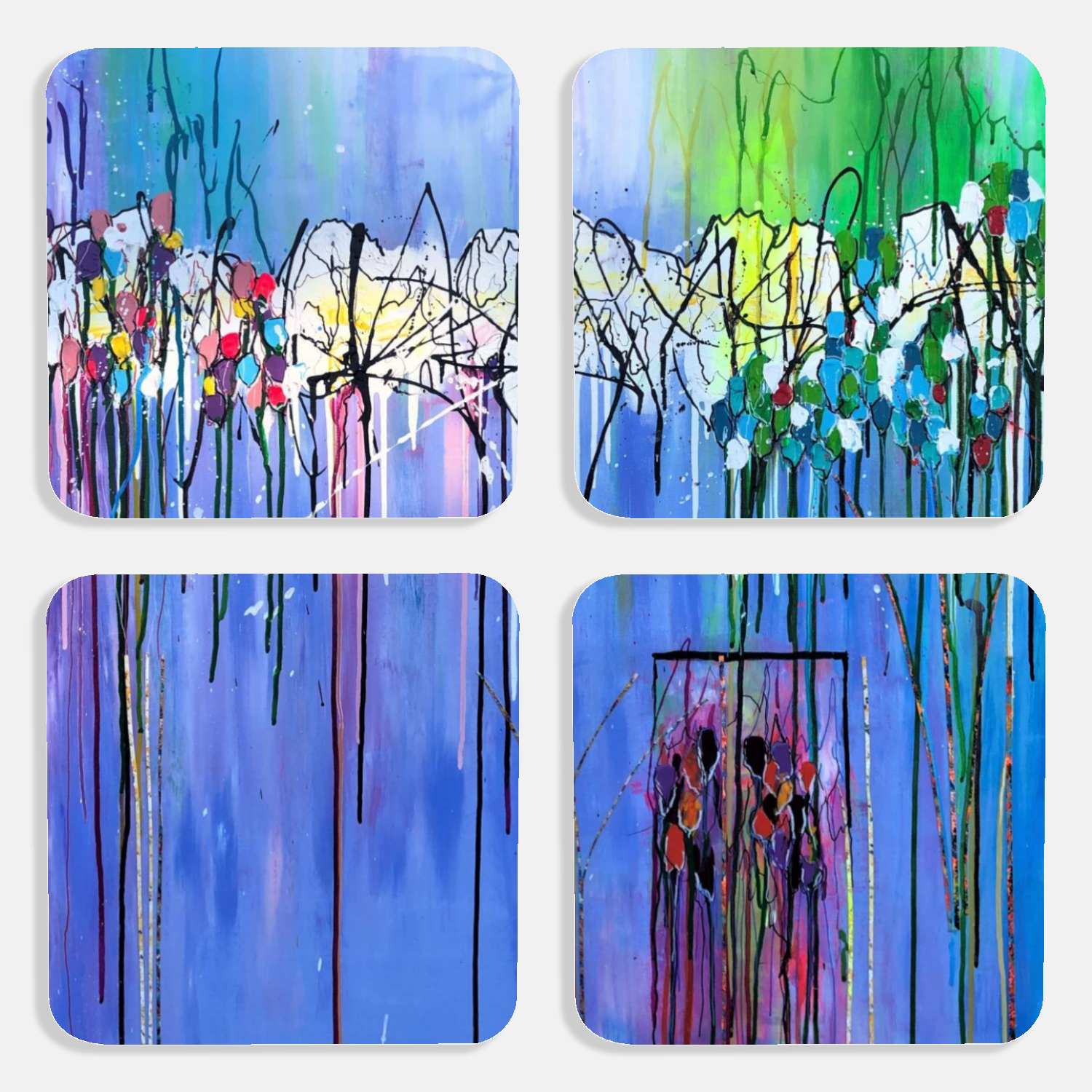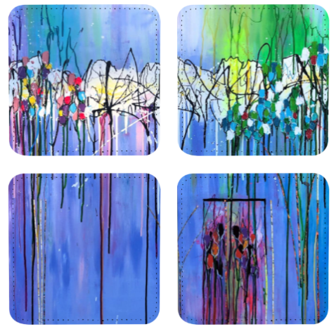 Each set includes 4 individually decorated coaters measuring 4"x 4" (10x10cm)
